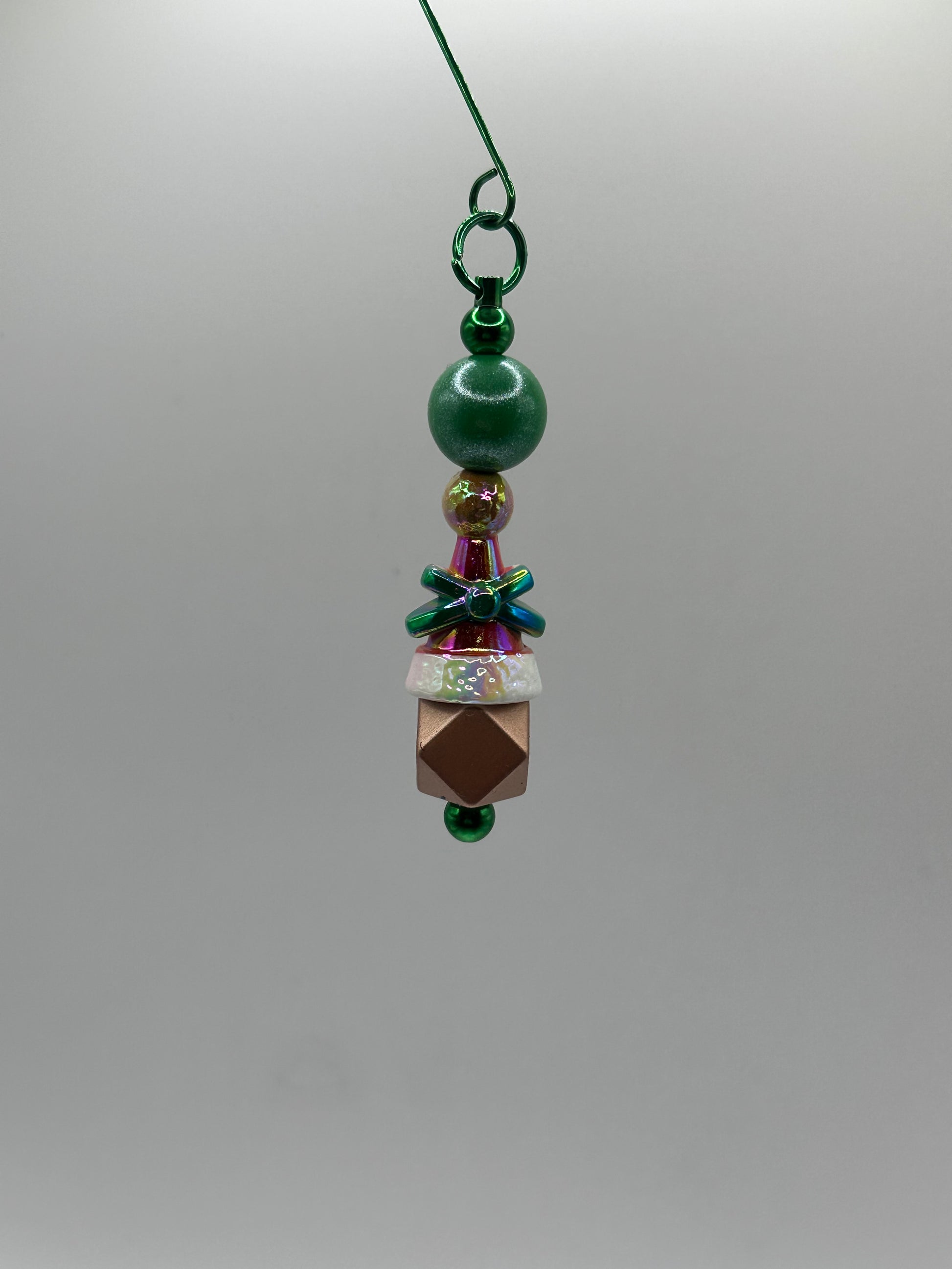 Christmas ornament made with different colors of ornaments and colored and designed to match the ornament colors.